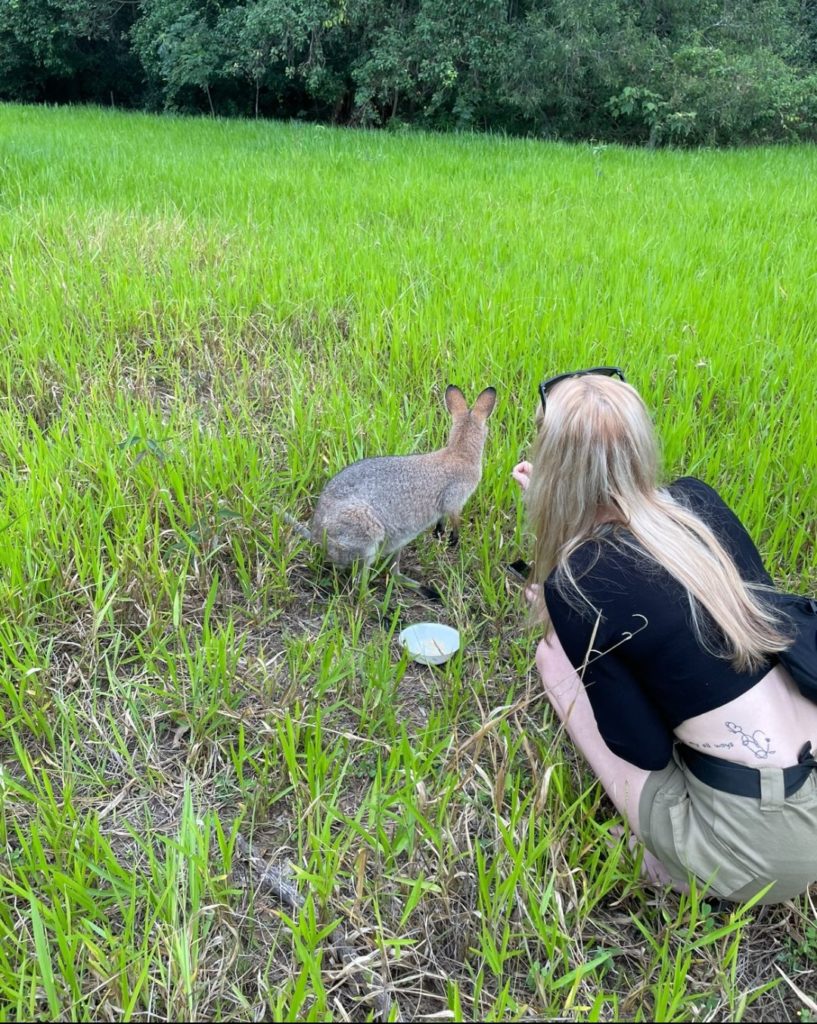 On my first day, I saw wallabies on the land and many exotics animals that only Australians can see! I was able to pet a wallaby because it is an orphan that the owners took care of when it was a baby.