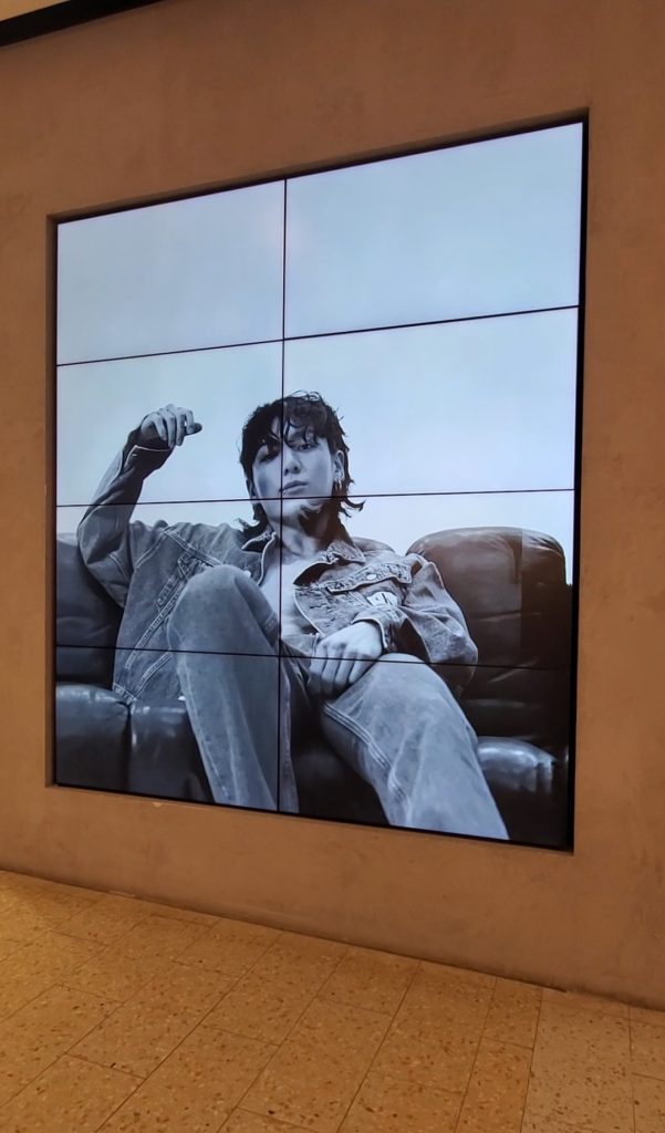 For every fan of K-Pop (Korean music), I have to talk about this experience! I was walking in the shopping center and wasn’t looking where I was going, but a big screen made my head turn that way. I saw Jungkook, a member of BTS! He is collaborating with Calvin Klein, so I had to take a picture of him! ?