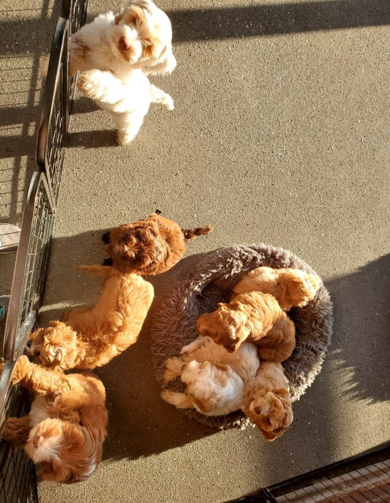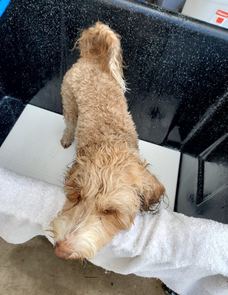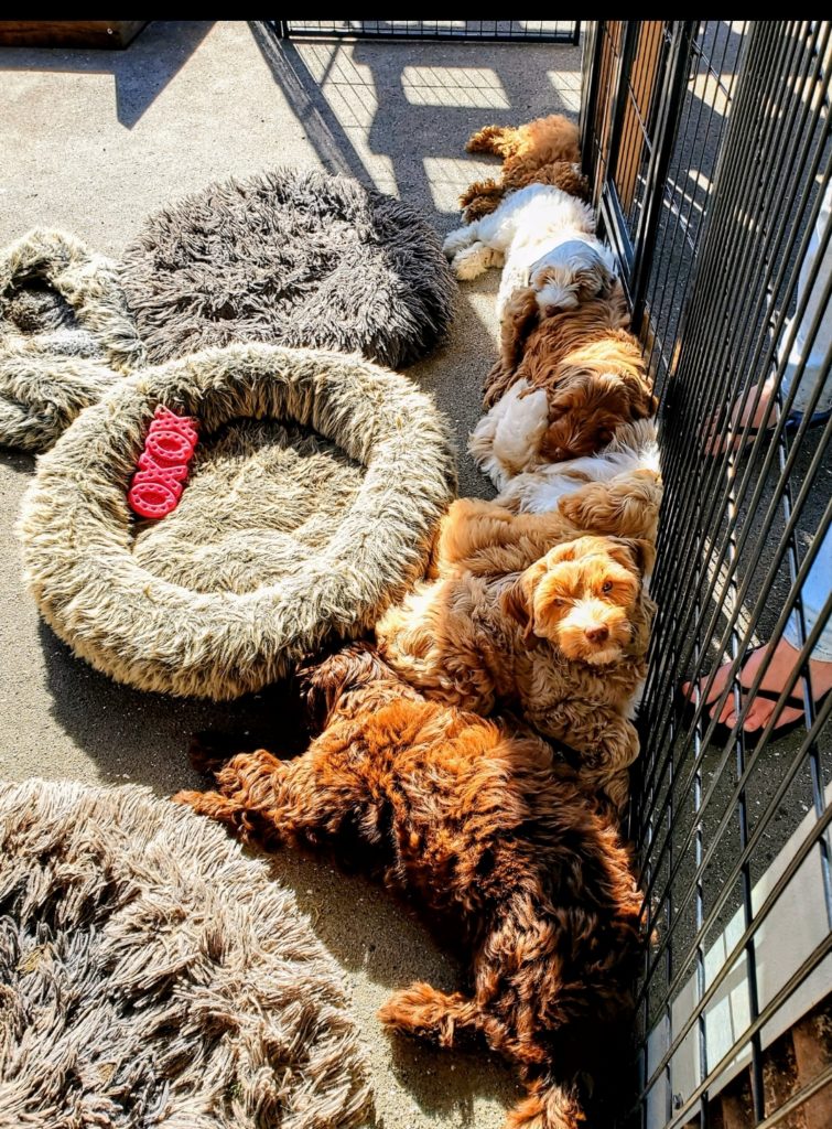 I met my new friends, 11 puppies between 8 and 12 weeks, and four dogs! (Sometimes more!) My first day, my task was to wash them. I had only washed my own dog in my bath, and I can tell you it is another challenge when puppies are part of the game! In the end, they were as soft as a Teddy bear.