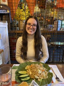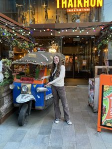 On Tuesday, I went to a Thai restaurant called Thaikhun with my new friend Dean, who was a volunteer at YHA for four days. The restaurant was lively, inviting and warm. The decor was breathtaking and showcased the culture of Thailand which included a tuk-tuk! The food was delicious! As a fan of spicy food, I was mightly surprised by the perfect spiciness of my fish cakes and my Thai fried rice. Furthermore, the dessert, a lemon tart, was mouthwatering. We left full and happy!