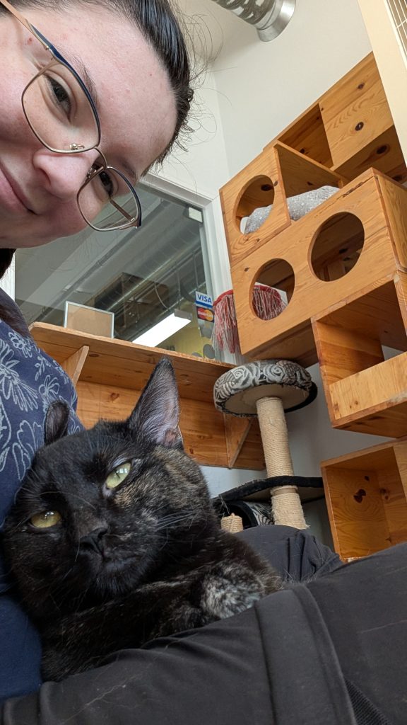 I made a bunch of new furry friends in only three days. My favourites so far are Chloe, a white husky that is 12 years old and a tortoiseshell cat named Raven. Chloe is an anxious dog and Raven is a social cat that likes to be pet. I would have gladly taken her home with me, but unfortunately for me, someone adopted her.